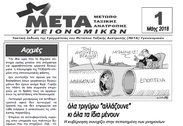 Η Γραμματεία του ΜΕΤΑ Υγειονομικών προχώρησε αυτές τις μέρες στην έκδοση του πρώτου φύλου ενός τετρασέλιδου ενημερωτικού δελτίου.